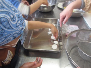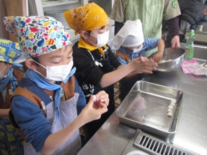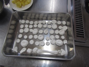 コロコロまるめて ひとくちサイズの おだんごをつくっていきます。