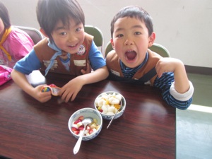 じぶんたちでつくった フルーツポンチの おあじは いかがでしたか??