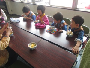 「ごちそうさま」をしたあとに、じしんにそなえて どんなことをじゅんびすればいいのか みんなで はなしあいました。 そう、3がつ11にちは あの おそろしい ひがしにほん だいしんさいが おこったひだよね。 また おおきなじしんが おきても こまらないように じゅんびを きちんと しておこうね。