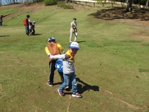 なんどもボールが かぜにとばされてしまいましたが どうにか さいごのペアまで ボールをつないで ゲームを おわらせることが できてよかったです。