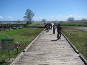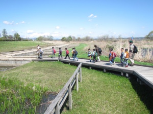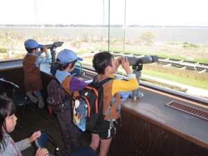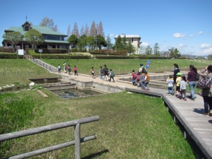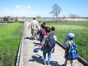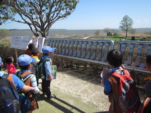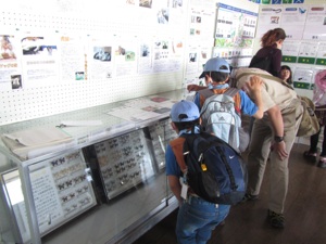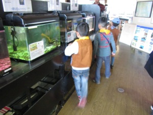 そして すいしゃを みながら あるいていくと ネイチャーセンターに とうちゃくです。 ネイチャーセンターには さかなのすいそうや しりょうコーナーが あったので かすみがうら について すこし おべんきょうをしました。