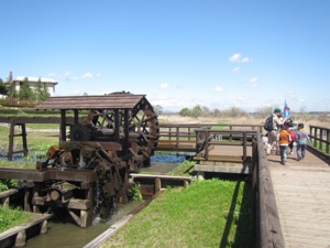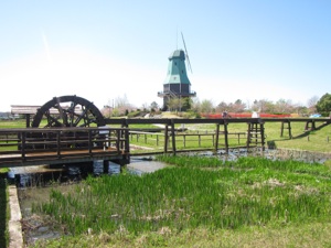 ほどうのうえは つよいかぜがふいていたので あるくのが たいへんでした。かぜにまけずに どんどん あるいていくと こんどは すいしゃが みえてきました。すいしゃは みずのちからで ゴトゴトと おとをたてて ゆっくり うごいていました。