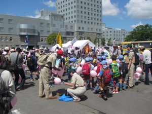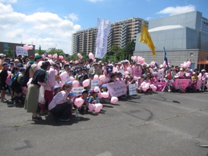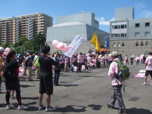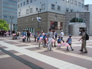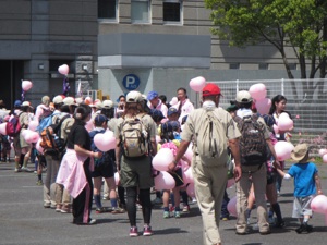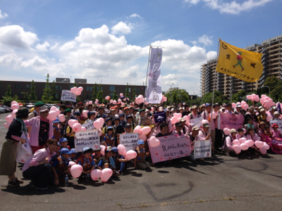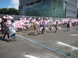ビーバーたいは、つくば3だんの みんなといっしょに ピンクリボン フェスティバルに さんかしました。 ピンクのハートのふうせんをもって、おかあさんたちが いつまでも げんきでいられるように おいのりしながら まちを あるきました。