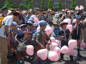 このひも たくさんのビーバースカウトが しゅうかいに さんかしました。 はじまりのセレモニーをきちんとやって、さいごは げんきなビーバーコールで ばっちりキメて ピンクリボンフェスティバルの かいかいしきの かいじょうへ しゅっぱつしました。