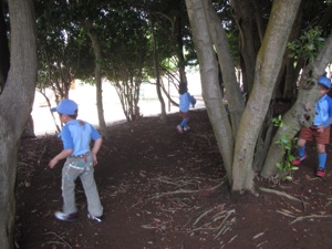 つかれてきたけど、なんとか とうちゃくしました〜。 みんなは、なぜか まっさきに いけにむかって とっしんです!! リーダーたちは みんなが いけに おちないように めをくばるのが たいへんでした。