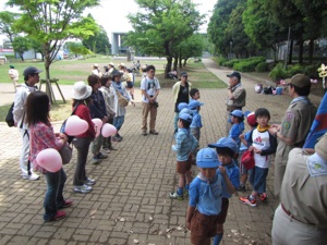 5がつ1かいめのしゅうかいは、「つくばピンクリボンフェスティバル」という、おおきな しゅうかいに さんかするために、あずましょうがっこうに しゅうごうしました。このひは、つくば3だんの ボーイたいとカブたいも いっしょでした。