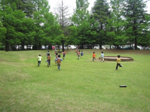 そのつぎは、はやしのなかで たいちょうと かくれんぼを しました。