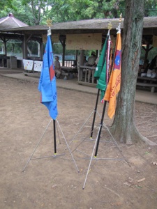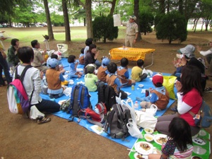 このひは つくば3だんの おとなたちが あつまって おはなしあいとバザーをするひだったので、 ビーバーたいは ボーイたいと カブたいといっしょに バザーの やたいむらに おみせを だすことにしました。
