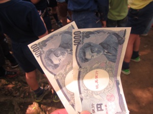 つぎは ほんものソックリの おさつをつかって ジャンケンゲームをしました。ジャンケンにかつと あいてから おかねがもらえるので ジャンケンがつよいひとは どんどん おかねもちになります。