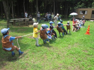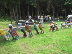 さいごに みんなで つなひきをして あそびました。 みんな いっしょうけんめいに ちからいっぱい ロープをひっぱっていて とてもかっこよかったです。