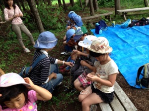 6がつの 2かいめのしゅうかいは あかげらのもり で おこないました。まえのひは あめがふっていたけど とても いいおてんきに なりました。