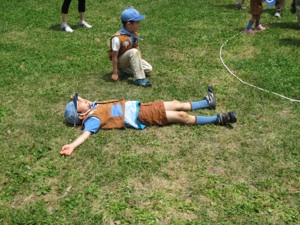 かんたんなゲームだけど、 みんな いっしょうけんめい にげまわったので リーダーのオニも ビーバーも くたくたになりました。