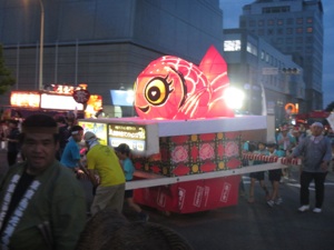 ことしは あかいきんぎょの ねぶたを みんなで ひきました。