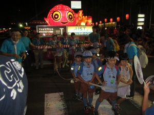 おまつりの かいじょうを 2しゅうして パレードは おしまいです。 みんな よく がんばったね。
