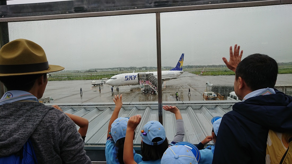 雨はあがりデッキで飛行機の離着陸を見ることができました!!!