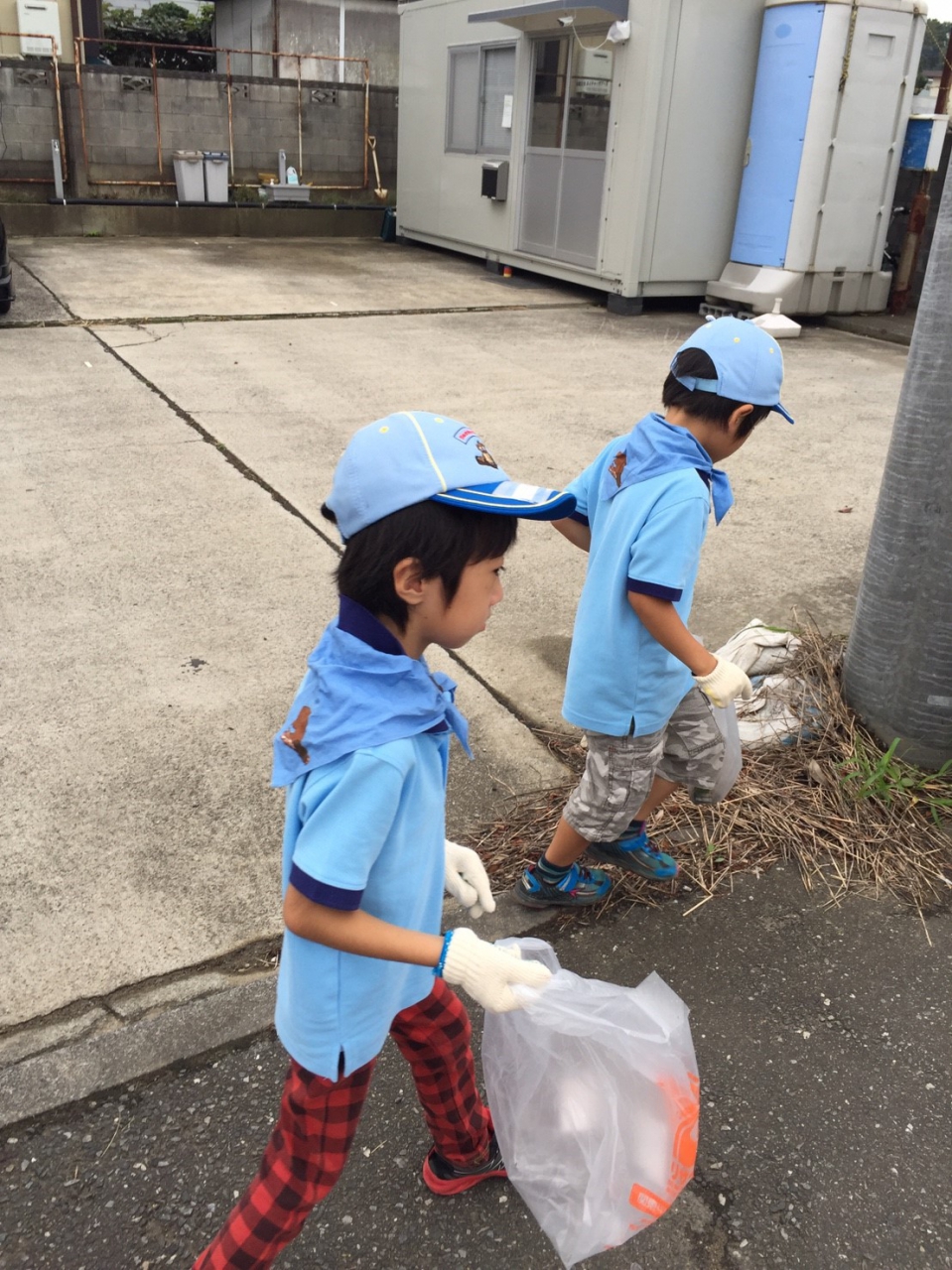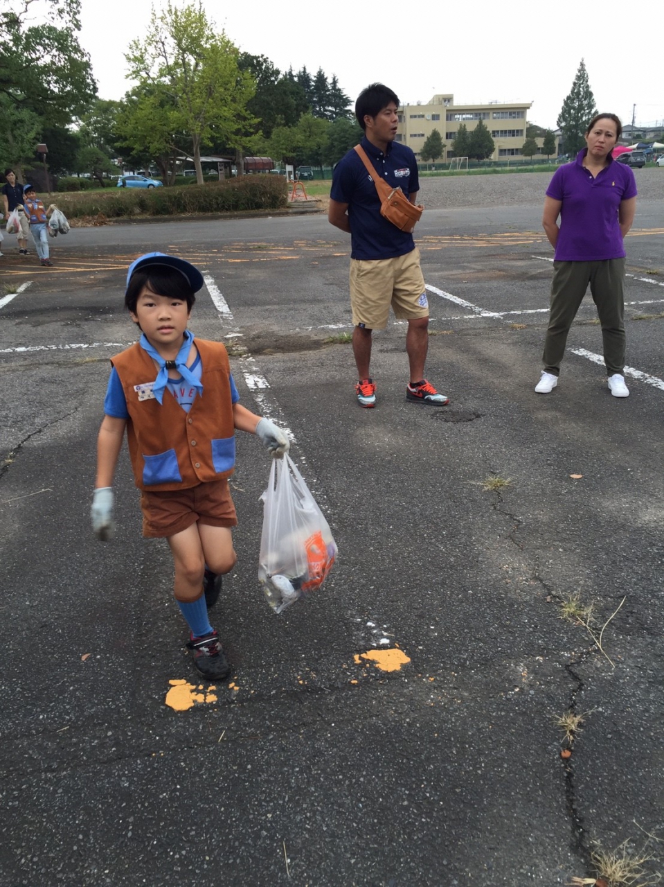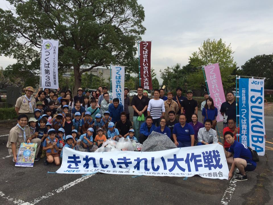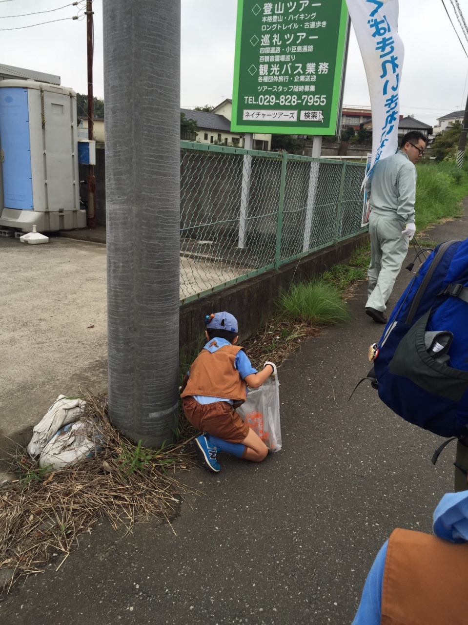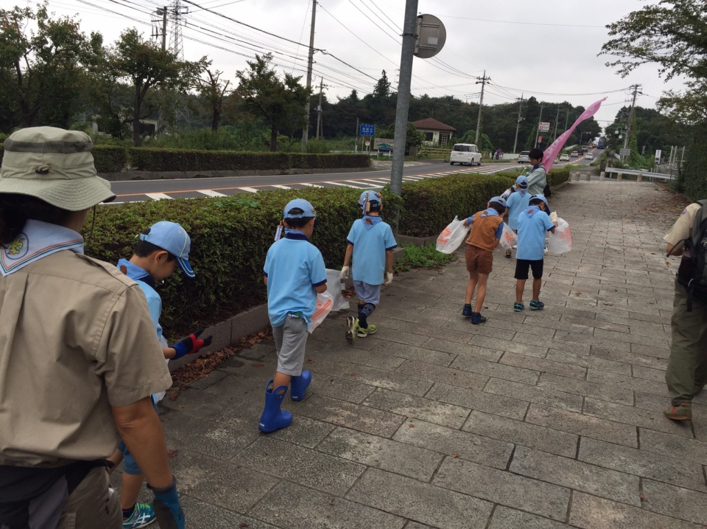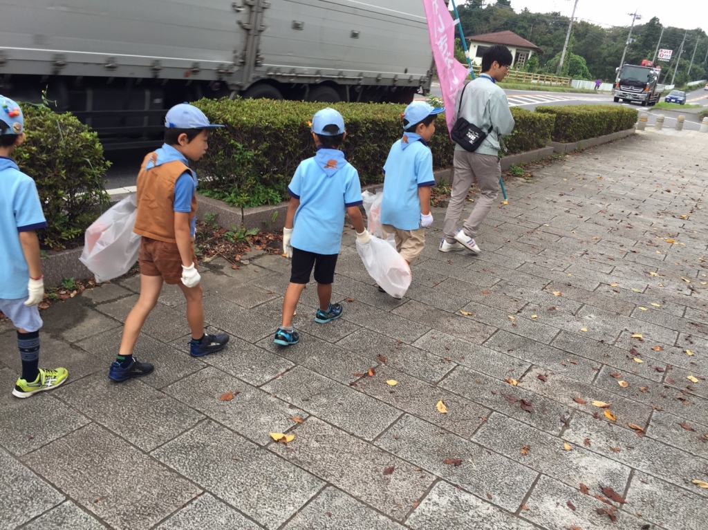 その日にちなみ、つくば3団のビーバー隊は「つくば市きれいなまちづくり実行委員会」のみなさんの「きれいきれい大作戦」に参加させていただき、街の清掃奉仕作業のお手伝いをしました。