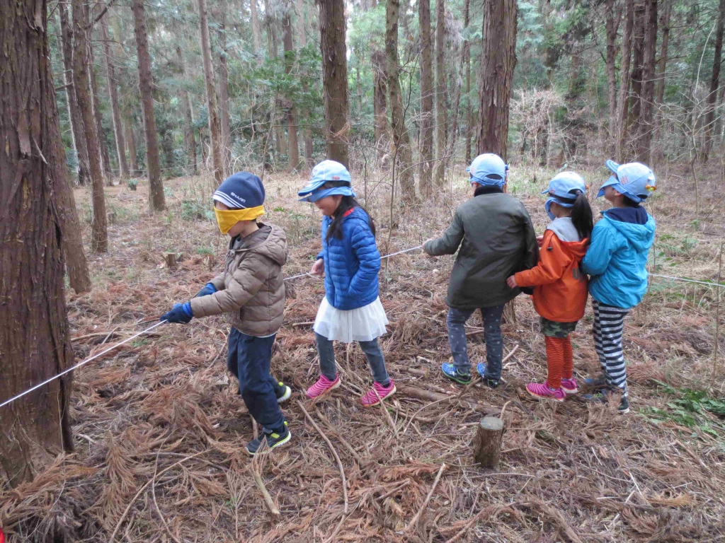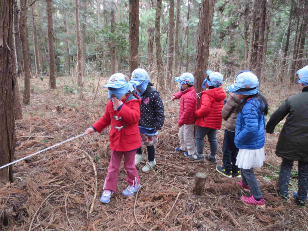 ③暗中行路ここでは、暗やみを想定して目隠しをし、
