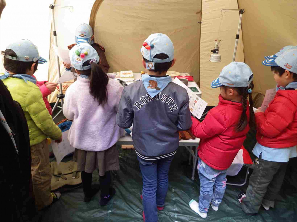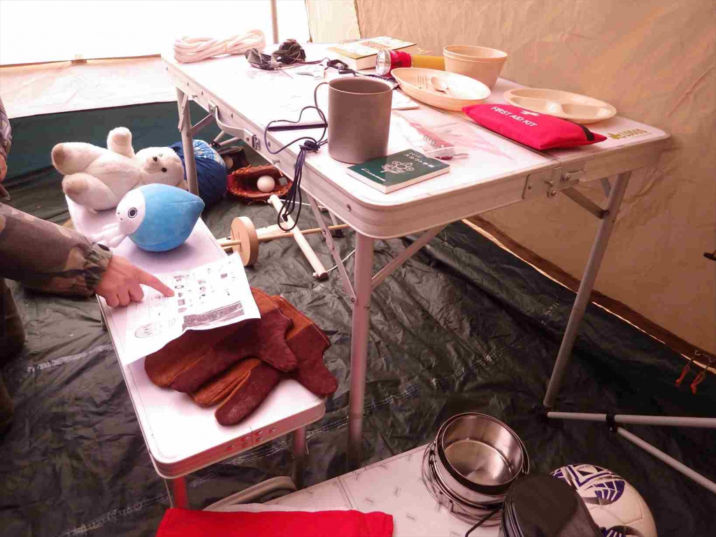④テント・キムススカウト活動に必要不可欠なスカウト用品がテントの中に並んでいます。
