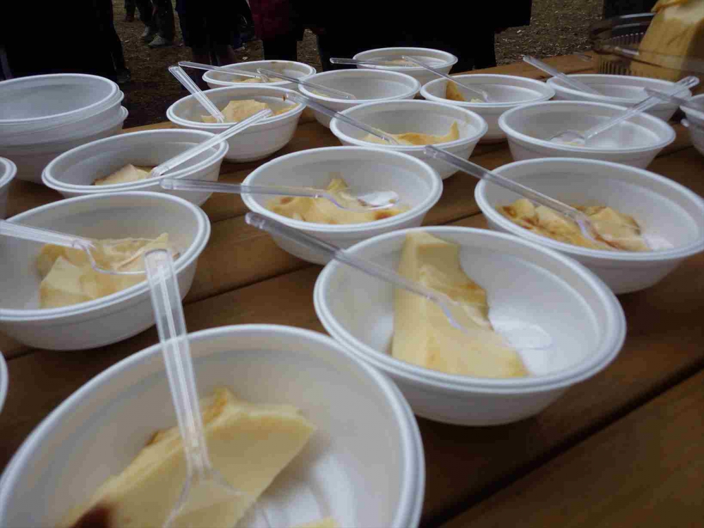 保護者のみなさんが準備してくれたカップスープで温まりながら