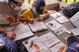 台風接近の影響で天気が崩れてきてしまい、途中で中止になってしまいました。雨の中での色付けは、さすがにできませんね。