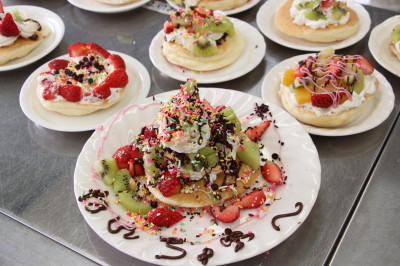 ピザトーストを盛りつけたりと大忙しでした.