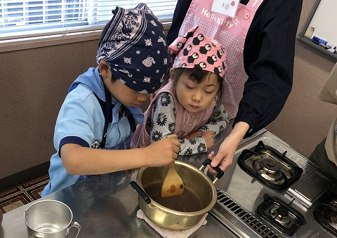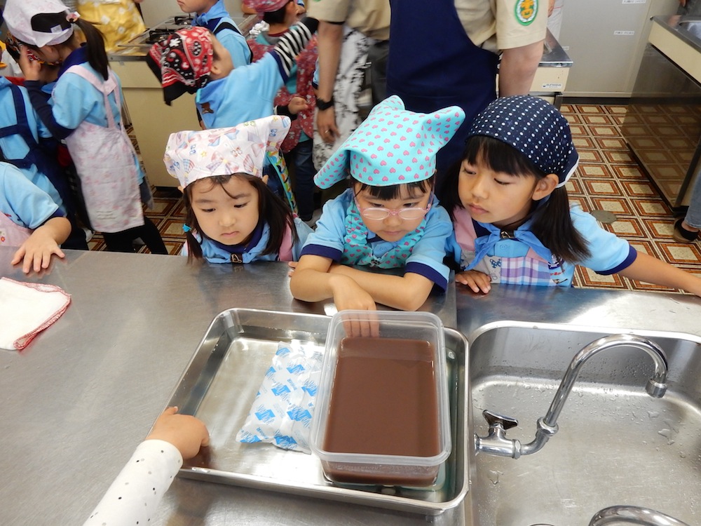 「水ようかんって どんなふうにつくるのかな?」とても興味津々。真剣です。