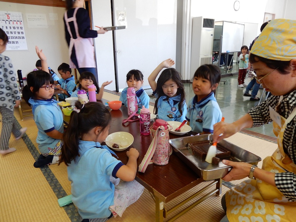 「おかわりもたくさんありますよ~。もっとたべたいひと~?」