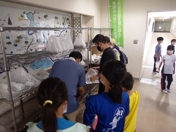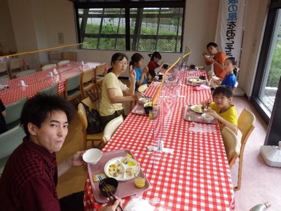 皆で美味しい朝食を残さず食べたあと、今日の昼食のオニギリ弁当を受け取ります。