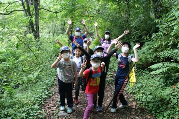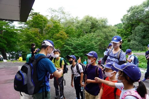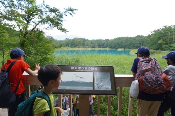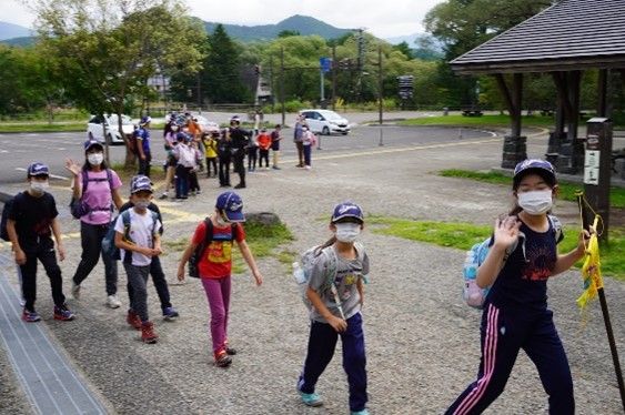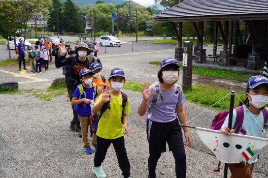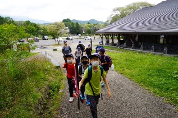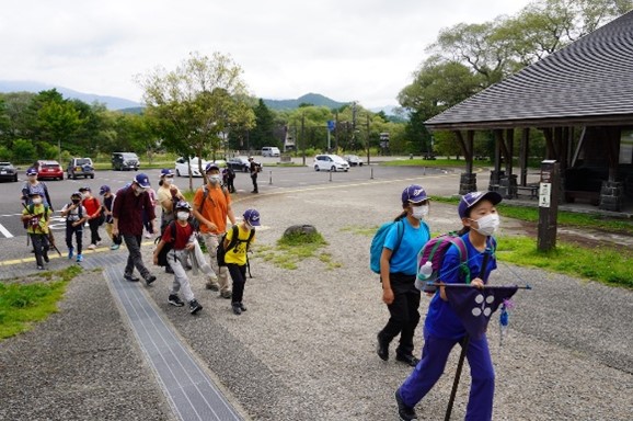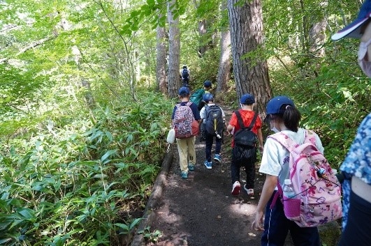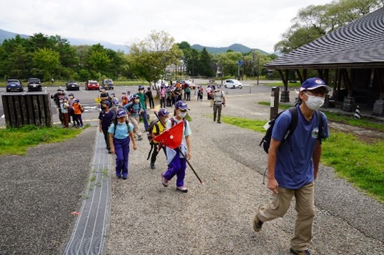 バスで移動して、五色沼の自然探勝路のハイクです。各組毎にそろって出発です。