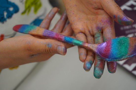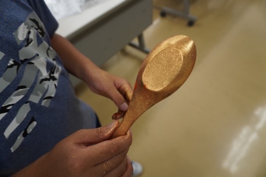 おお、ラリッたスカウトたちが絵を描くことを放棄し、スプーン全体を金ピカに染め始めましたよ。