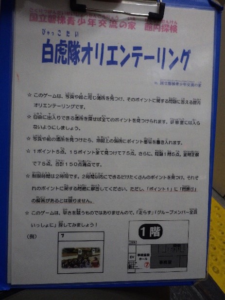 白虎隊に関する情報が記載されたボードが館内のあちこちに設置されており、それを探し出せ。