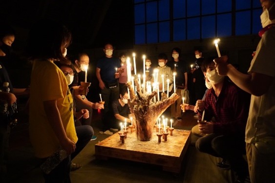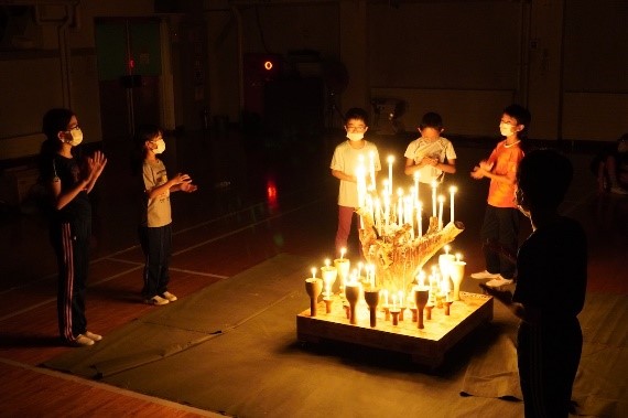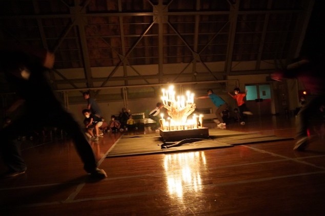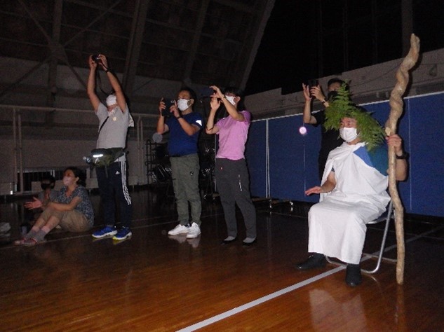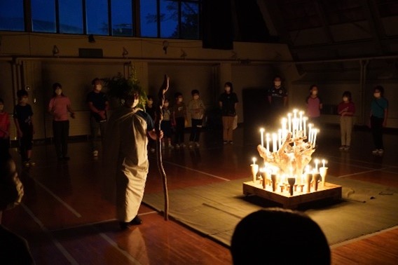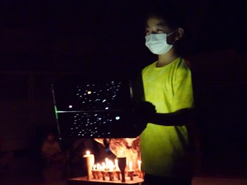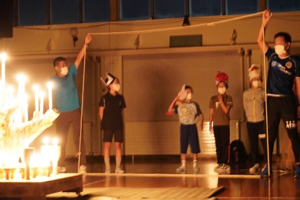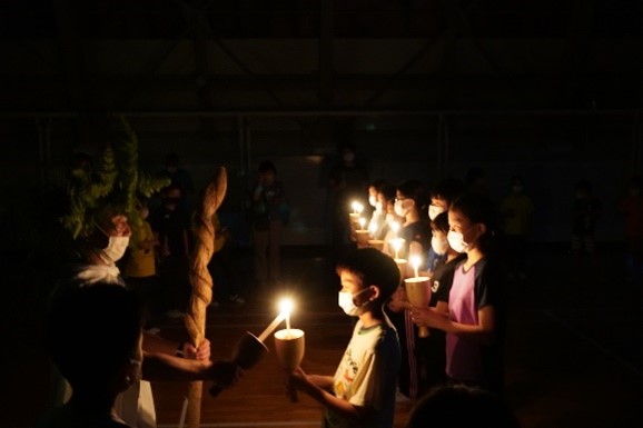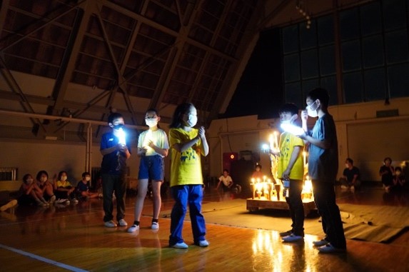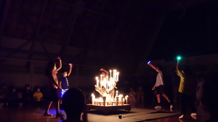 夕食後は雨天のため、キャンプファイヤーではなく、体育館でキャンドルファイヤーです。
