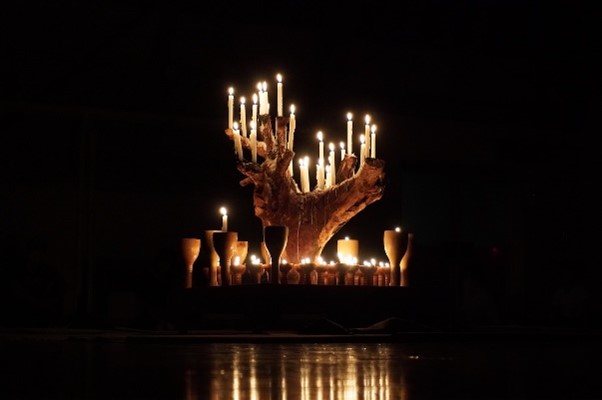 クマたちが火神ヴォルカーヌスから受け取った神聖な火を、たくさんのキャンドルに移します。
