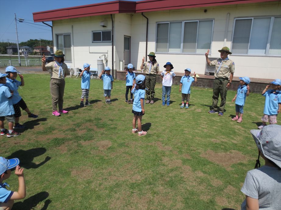 ビーバー隊の「やくそく」と「きまり」をみんなでいいます。