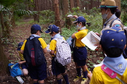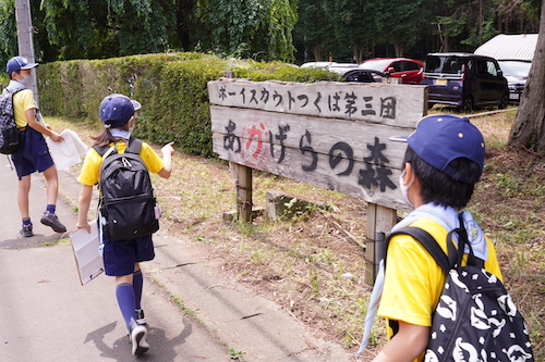 スカウトたちは指示書の暗号をときながら、あかげら周辺を散策しました。