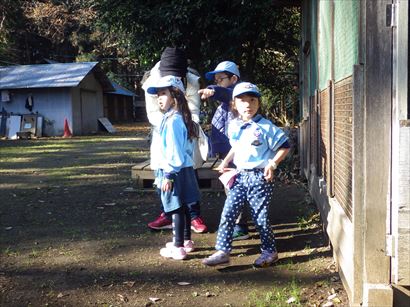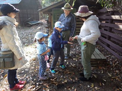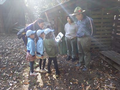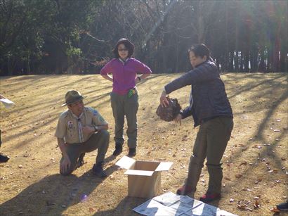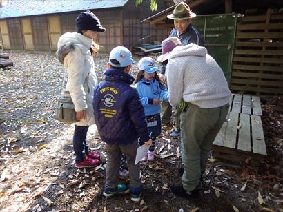 興味津々で巣の中を覗き込むスカウト達。
