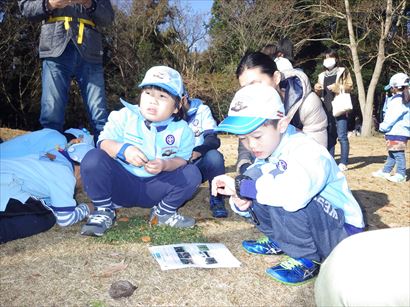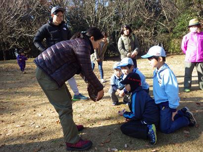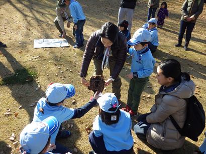 ③いちばん大きな松ぼっくりを見つけたチームにポイント