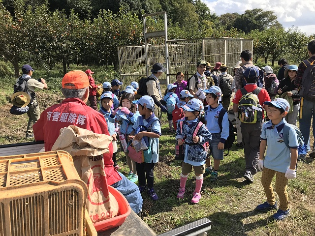 イノシシを捕まえるワナを仕掛ける様子も見る事ができました
