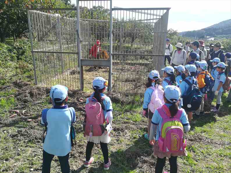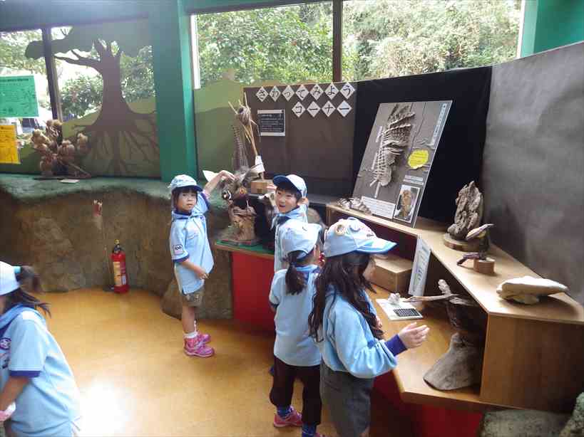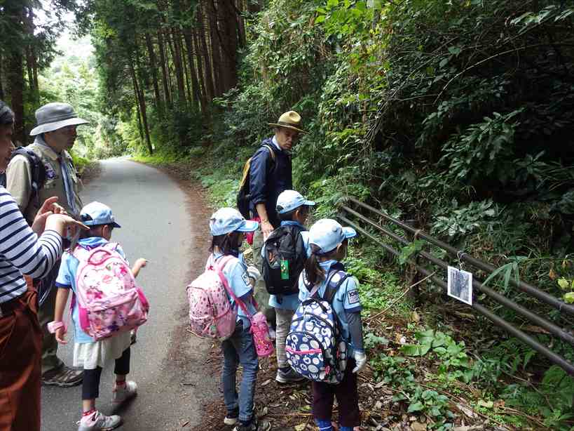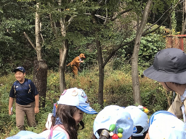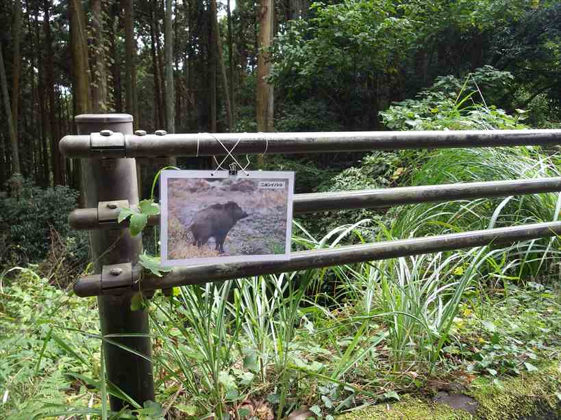 道の途中ではリーダーが準備した動物達のパネルでお勉強。