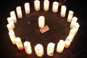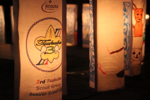 前回の隊集会で作った思い思いのランタンを並べて,ろうそくに火をつけるととてもきれいなランタンアートが出来上がりました.(とてもペットボトルとA4のコピー用紙で作ったとは思えない・・・)