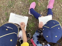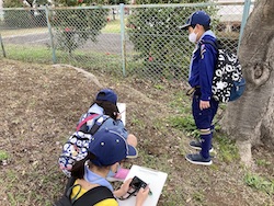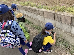 ハイキングの途中、春を見つけて写真や絵で記録していきました。