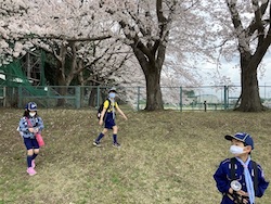 ゴール地点で隊長に到着報告するさまが、立派になってきました。