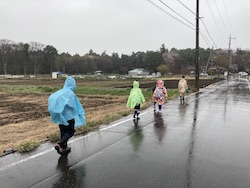 スカウト達は、活動の時にいつも持ってきているポンチョを着込んで、進みます。