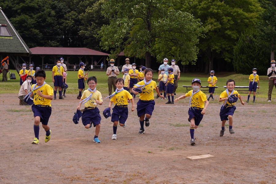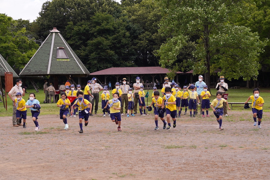 続いては各組から1名ずつ代表スカウトが走ります。