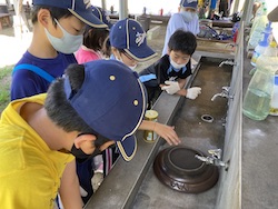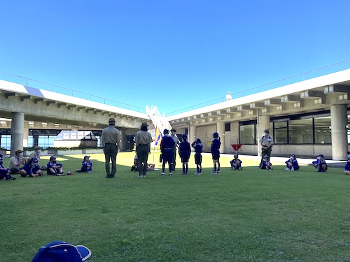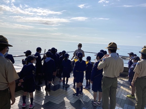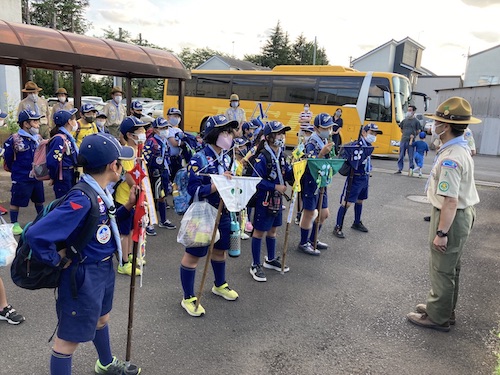 キャンプ最終日の朝、スカウト達は帰りじたくをした上で点検を受けます。
