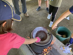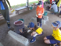 煮込んで煮込んで、塩が出てくると、スカウト達はその様子に釘づけでした。