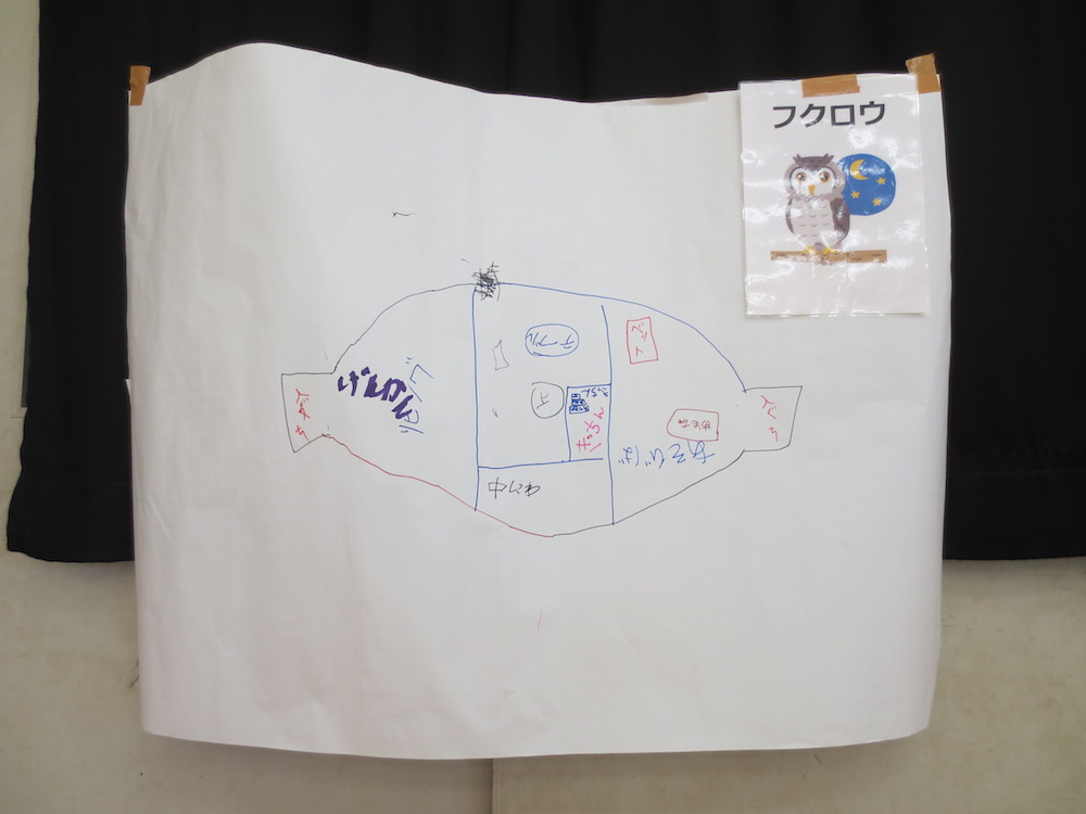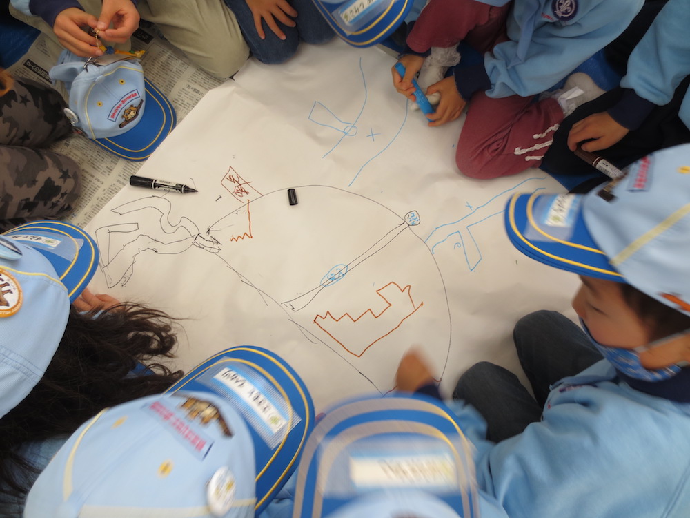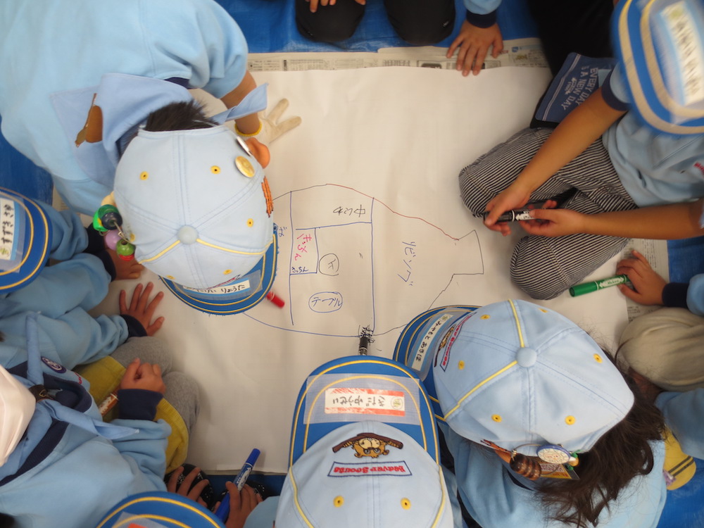 みんなのアイディアを出し合って真っ白な模造紙に描いていきます。
