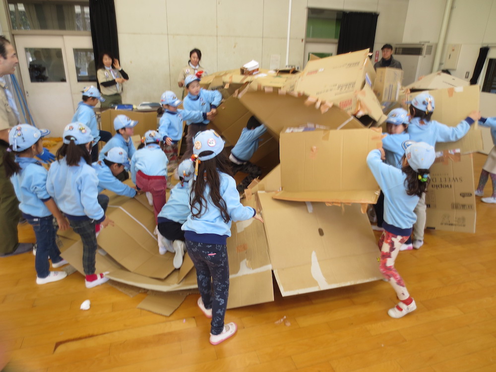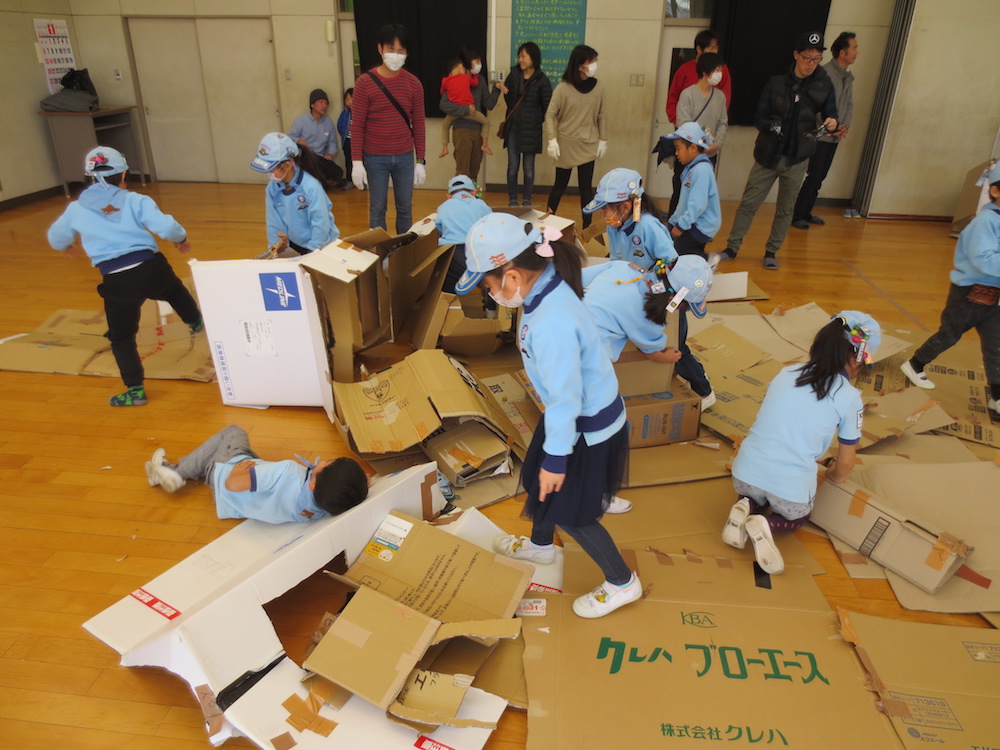 最後にみんなでダンボールを片付けて終了です。