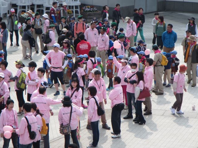 ピンク色に染まったつくばセンター広場を出発し、