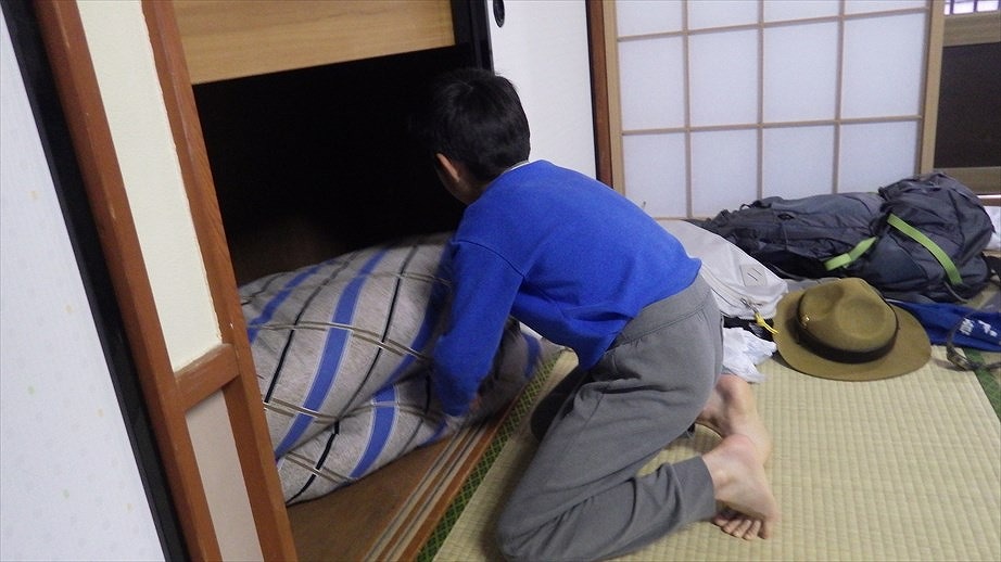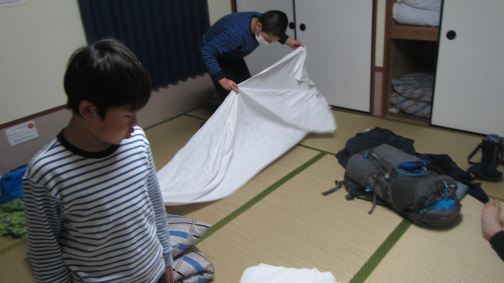 シーツを畳んだり、布団を片付けたり、着替えたり、荷物をまとめたり、ラジバンダリ。